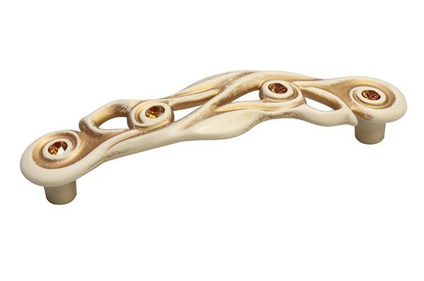 Ручка скоба WMN.724X.096.MTZT5, материал Замак, отделка Золотая патина Золото Слоновая кость Хрусталь, 118*29*26 мм